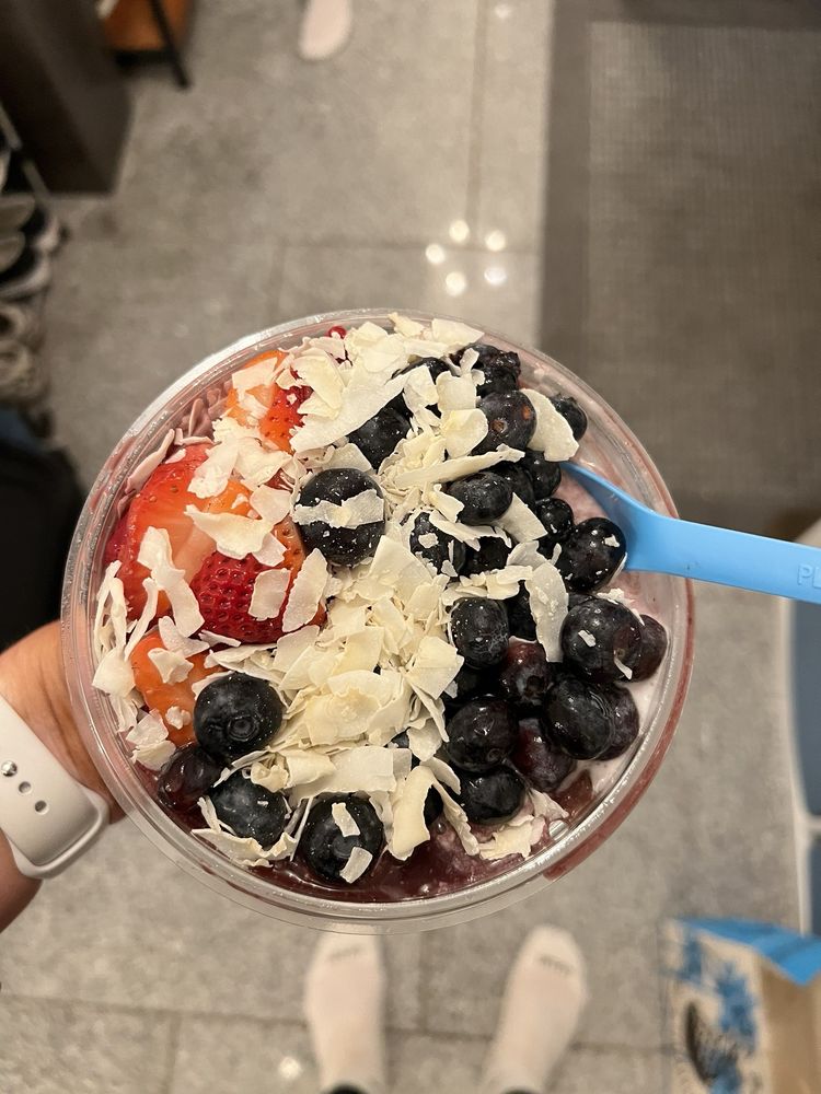Playa Coconut blend topped with granola, strawberry, blueberry & honey